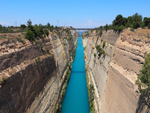 Initially, they designed elaborate methods of portaging ships across the land to save dangerous sea travel around the southern tip of Achaia. This was eventually replaced by an amazing canal that connects east to west. It can be argued that this engineering feat rivals and possibly surpasses that of the Panama Canal because it literally cuts through five miles of solid rock hundreds of feet deep in the center. The canal is still in use today.